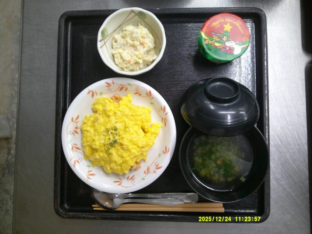 ふわとろ卵たっぷりのオムライスを提供しました。「ごちそうだねぇ」と好評の声をいただきました。