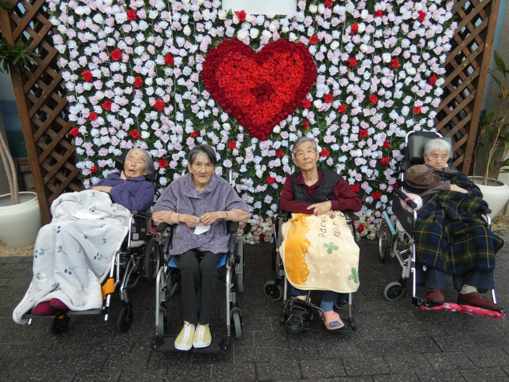 お花はちょっと少なかったのですが、かわいいハートのオブジェの前で、記念撮影をしました。